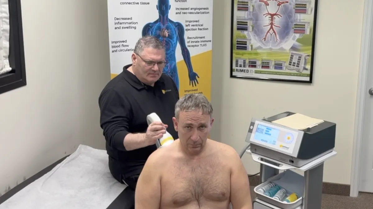 It uses energy waves to penetrate deep into the tissue to promote blood flow, circulation, reduce inflammation and eliminate pain while also stimulating the migration of your body’s stem cells for long-term healing.